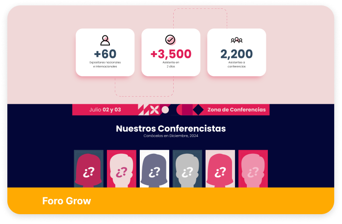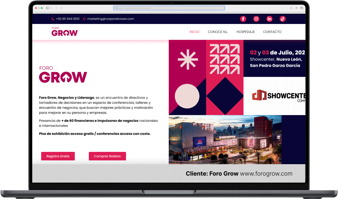 Página ecommerce destinada a la venta de boletos para la expo Foro Grow, un encuentro de directivos y tomadores de decisiones en un espacio de conferencias, talleres y encuentro de negocios.