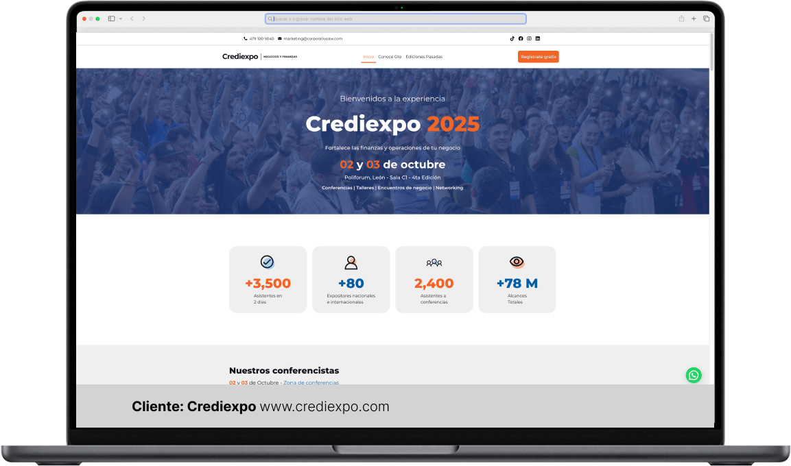Página ecommerce destinada a la venta de boletos para Crediexpo, un evento diseñado para fortalecer las finanzas y operaciones de tu negocio mediante conferencias, talleres, encuentros empresariales y actividades de networking.
